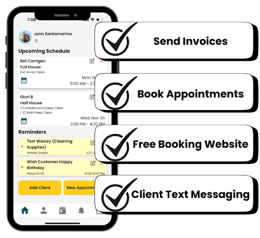 Get your own customizable booking website at no extra cost—clients can view your services, check availability, and book appointments anytime.